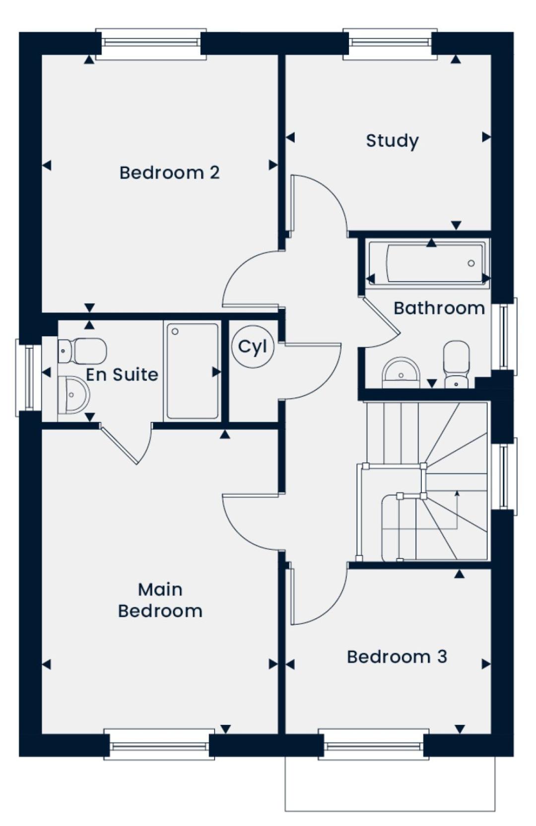 This four bedroom detached home has a living room to the front of the property, with an open plan kitchen, dining and family area to the rear. Upstairs you will find the main bedroom with en suite, two further bedrooms, a separate study and bathroom.